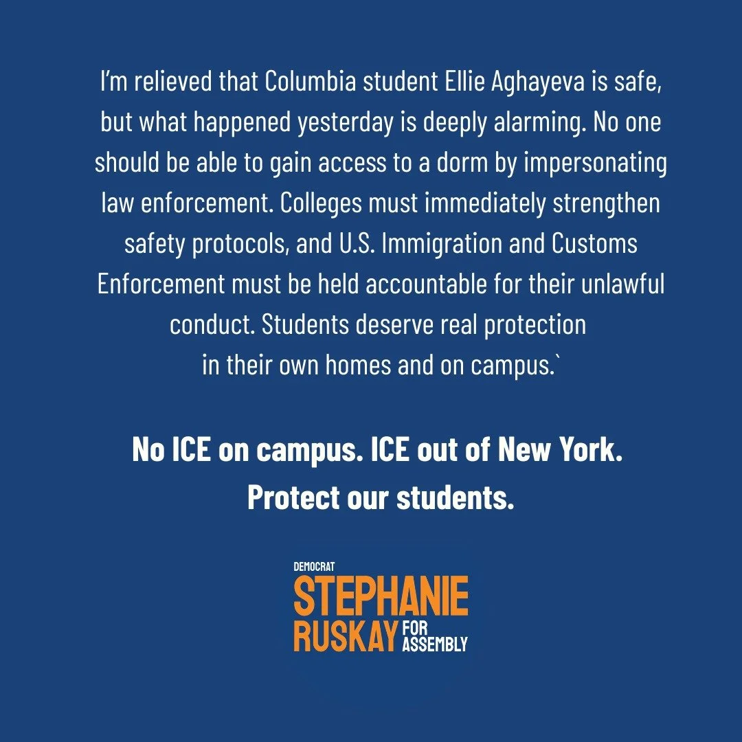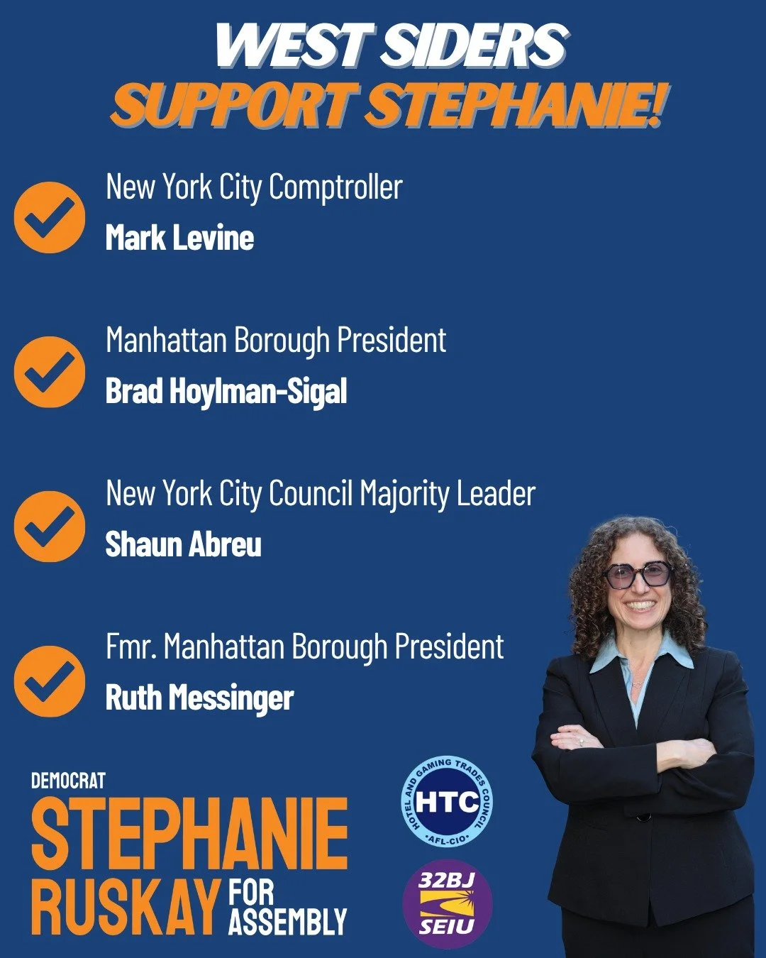 “Stephanie Ruskay is the real deal - a public school parent, tenant, and multi-faith organizer who personally understands the issues impacting Upper West Side and Morningside Heights families. I’m excited to endorse her for State Assembly.”